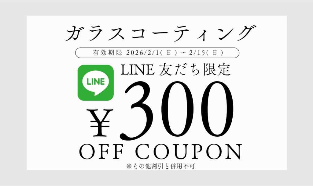 皆さんこんにちは!2月1日より当店公式LINEお友だち限定でクーポン配信中です!今月は【ガラスコーティング300円OFF】!!2月15日までの限定クーポンとなっておりますので、スマホやタブレットのガラスコーティングをご検討中の方はお早めにご依頼ください... -